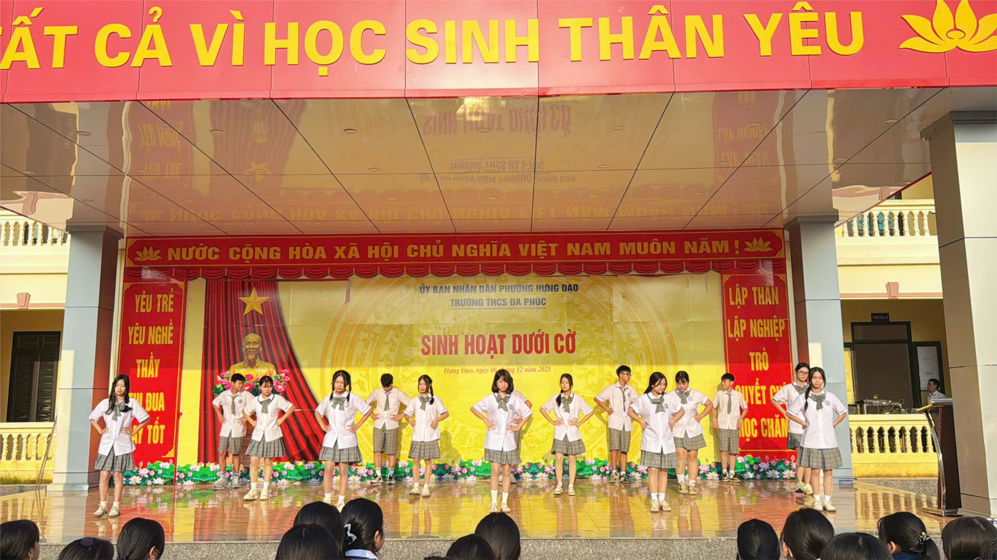 Ngày 8/12/2025, trường THCS Đa Phúc tổ chức chào cờ tháng 12 và SHDC khối 8 chủ điểm "RÈN LUYỆN BẢN THÂN" qua việc phòng chống tác hại của Thuốc lá, Thuốc lá điện tử, Bạo lực gia đình” .