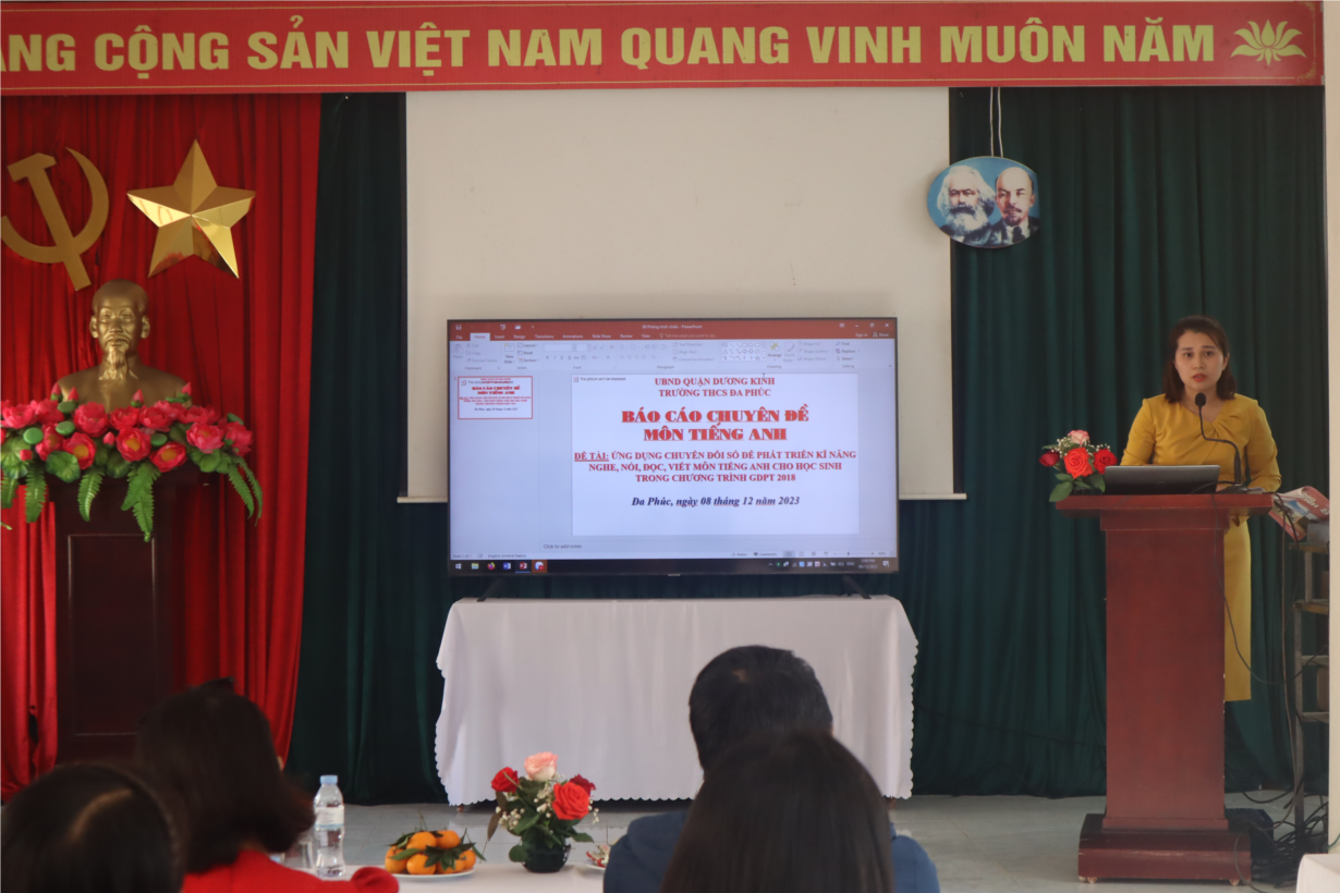 Ngày 08 tháng 12 năm 2023 Trường THCS Đa Phúc tổ chức chuyên đề Tiếng Anh cấp quận "Ứng dụng chuyển đổi số để phát triển kỹ năng nghe, nói, đọc, viết môn Tiếng Anh cho học sinh trong chương trình GDPT 2018" - Năm học 2023-2024