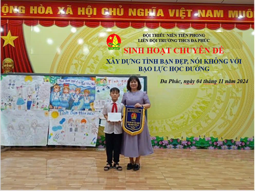 Chiều 4/11/2024, trường THCS Đa Phúc tổ chức buổi chào cờ đầu tháng 11 với nội dung: Phút tưởng niệm nạn nhân tử vong vì TNGT và Sinh hoạt dưới cờ với chủ đề "Xây dựng tình bạn đẹp, nói không với bạo lực học đường" cho HS Khối 6.