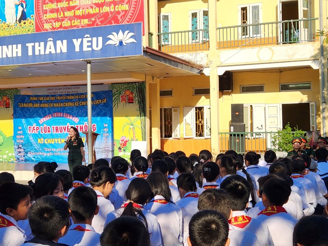 Thầy và trò, Trường THCS Đa Phúc – Quận Dương Kinh – Thành phố Hải Phòng rất vui mừng, vinh dự và tự hào được phối hợp với câu lạc bộ nhân chứng lịch sử tổ chức buổi giao lưu, kể chuyện với chủ đề “Tiếp lửa truyền thống cho học sinh”. Các câu chuyện về cuộc kháng chiến hào hùng của dân tộc ta, đặc biệt là cuộc kháng chiến chống đế quốc Mĩ được tái hiện lại qua lời kể của các nhân chứng lịch sử - đó chính là các bác, các chú trực tiếp tham gia cuộc kháng chiến chống Mĩ kể chuyện cùng các em.