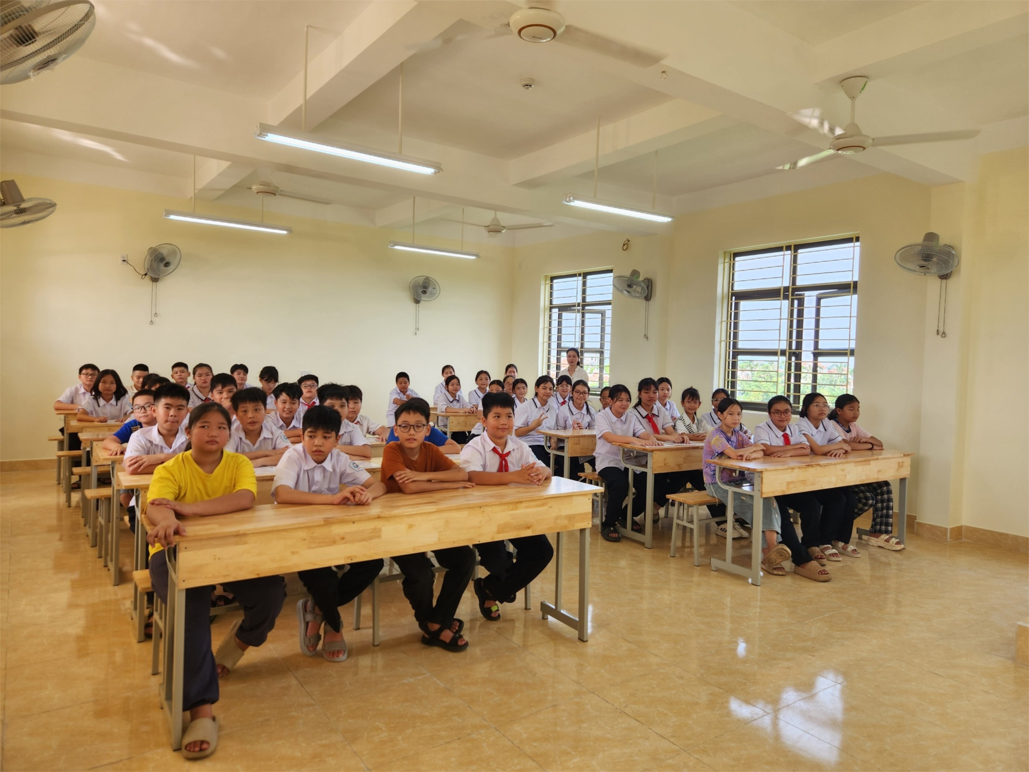 Nhà trường chào đón 219 học sinh và các phụ huynh đưa con đến nhận lớp 6 tại Trường THCS Đa Phúc.