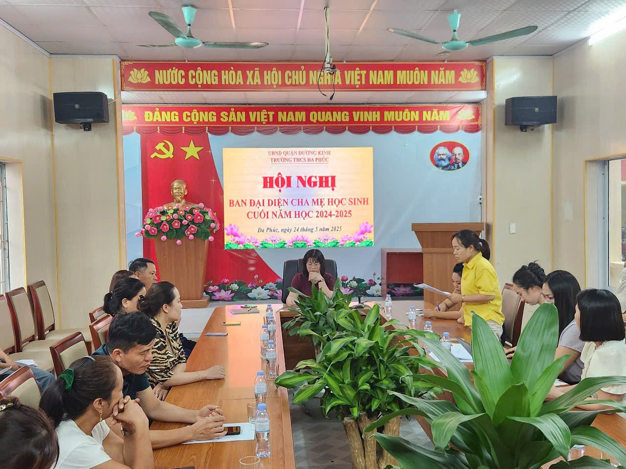 Chiều 24/5/2025, trường THCS Đa Phúc đã diễn ra hội nghị Ban đại diện CMHS cuối năm học 2024 - 2025. Đây là hoạt động thường niên có ý nghĩa quan trọng nhằm tổng kết, đánh giá kết quả phối hợp giữa nhà trường và phụ huynh trong suốt năm học, đồng thời triển khai những nhiệm vụ trọng tâm trong hè 2025 và định hướng kế hoạch chuẩn bị cho năm học mới 2025-2026.