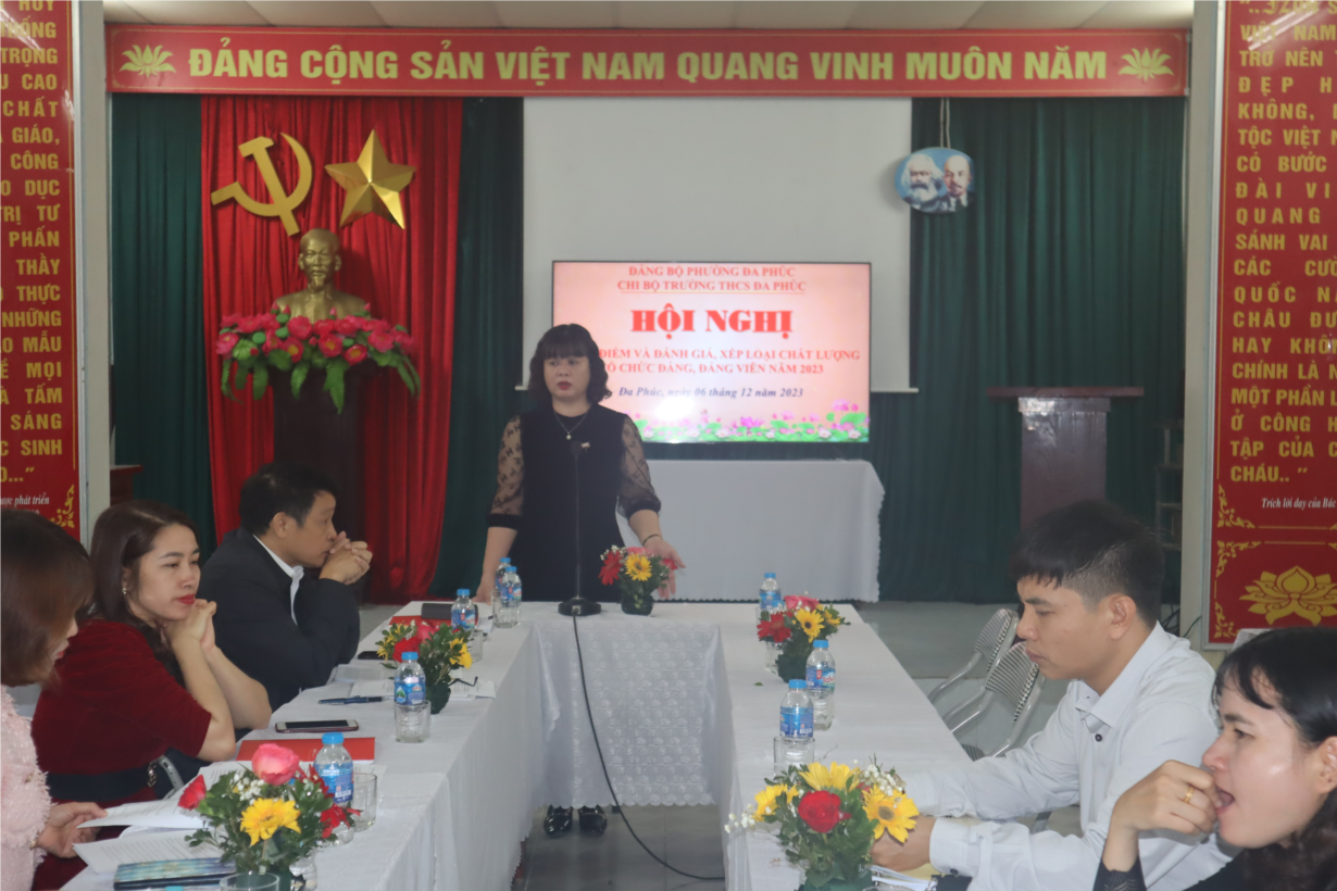 Thực hiện công văn số 94-KH/QU ngày 27 tháng 11 năm 2023 của Quận ủy Dương Kinh Sáng thứ tư, ngày 06 tháng 12 năm 2023 Chi bộ Trường THCS Đa Phúc tổ chức Hội nghị kiểm điểm và đánh giá xêp loại chất lượng tổ chức Đảng, đảng viên năm 2023 về việc tổ chức kiểm điểm và đánh giá xêp loại chất lượng tổ chức Đảng, đảng viên năm 2023. Sự chỉ đạo của Đảng bộ phường Đa Phúc. Sáng thứ tư, ngày 06 tháng 12 năm 2023 Chi bộ Trường THCS Đa Phúc tổ chức Hội nghị kiểm điểm và đánh giá xêp loại chất lượng tổ chức Đảng, đảng viên năm 2023.