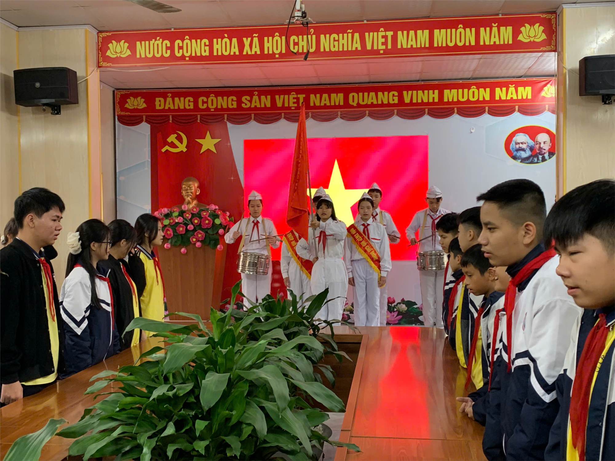 Lễ chào cờ chào mừng Đại hội đại biểu toàn quốc lần thứ XIV của Đảng kết thúc trong không khí trang nghiêm, ấm áp và đầy ý nghĩa. Chúc các em bước vào tuần học mới với tinh thần hứng khởi và nhiều thành tích tốt đẹp.