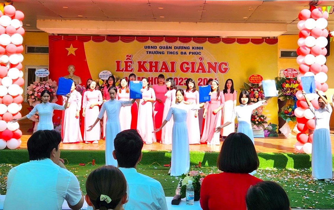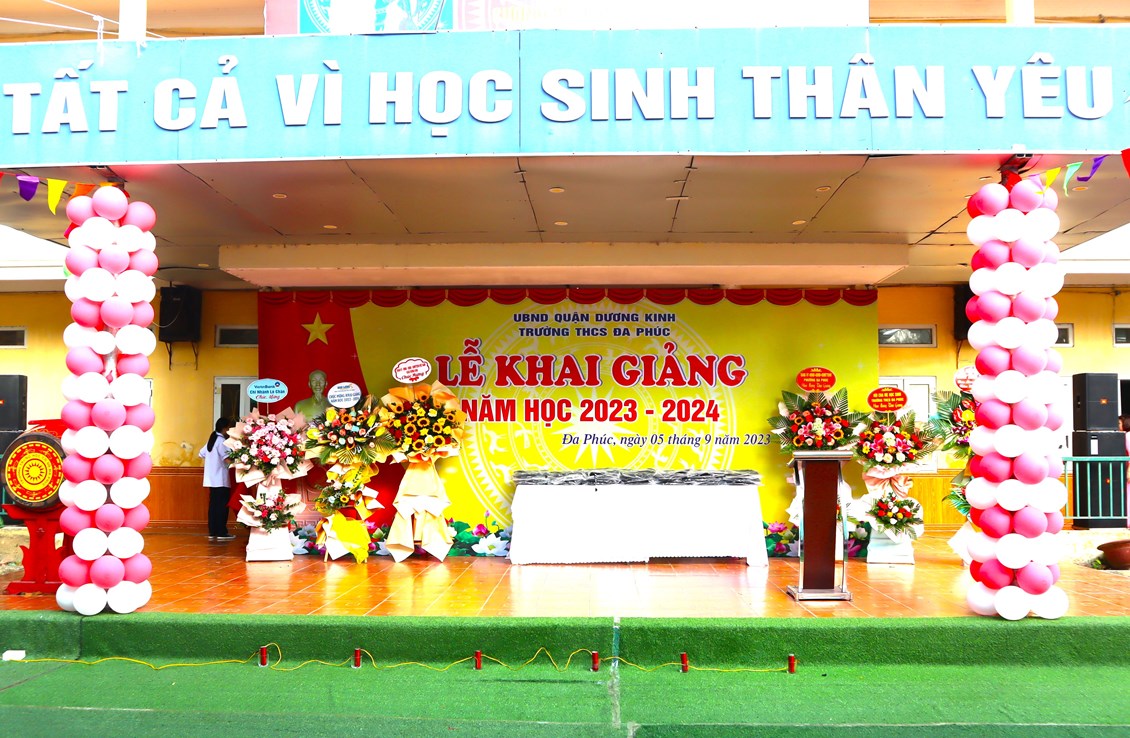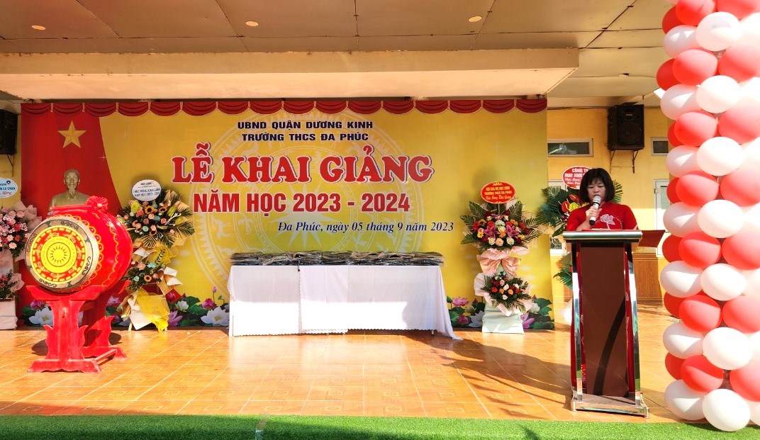 Trong Lễ khai giảng, nhà trường vinh dự được đón tiếp các quý đại biểu: Ông Đặng Xuân ĐIện - ỦY viên BTV Quận ủy, Phó Chủ tịch thường trực UBND Quận Dương Kinh; Ông Bùi Duy Tân - Phó chánh văn phòng HĐND, UBND Quận Dương Kinh; Ông Bùi Văn Đủ - Phó Bí thư thường trực, Chủ tịch HĐND Phường Đa Phúc; Ông Hoàng Văn Công - Đảng ủy viên, Bí thư Đoàn phường.