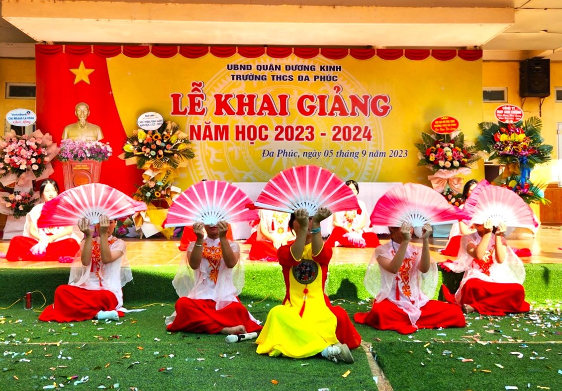 Tiếp theo là chương trình văn nghệ đặc sắc do chính các thầy cô giáo và các em học sinh biên đạo và biểu diễn đã mang đến cho niềm phấn khởi vui tươi trong Lễ khai giảng.