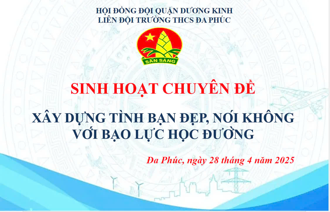 Nhằm tăng cường giải pháp phòng chống bạo lực học đường trong trường học, góp phần giáo dục ý thức, đạo đức, lối sống văn hóa cho học sinh, đồng thời tạo sân chơi rèn luyện sức khỏe, tăng cường sự giao lưu tình đoàn kết giữa các bạn đội viên. Liên đội trườngTHCS Đa Phúc đã tổ chức Sinh hoạt theo chuyên đề “Xây dựng tình bạn đẹp, nói không với bạo lực học đường” năm học 2024 – 2025.