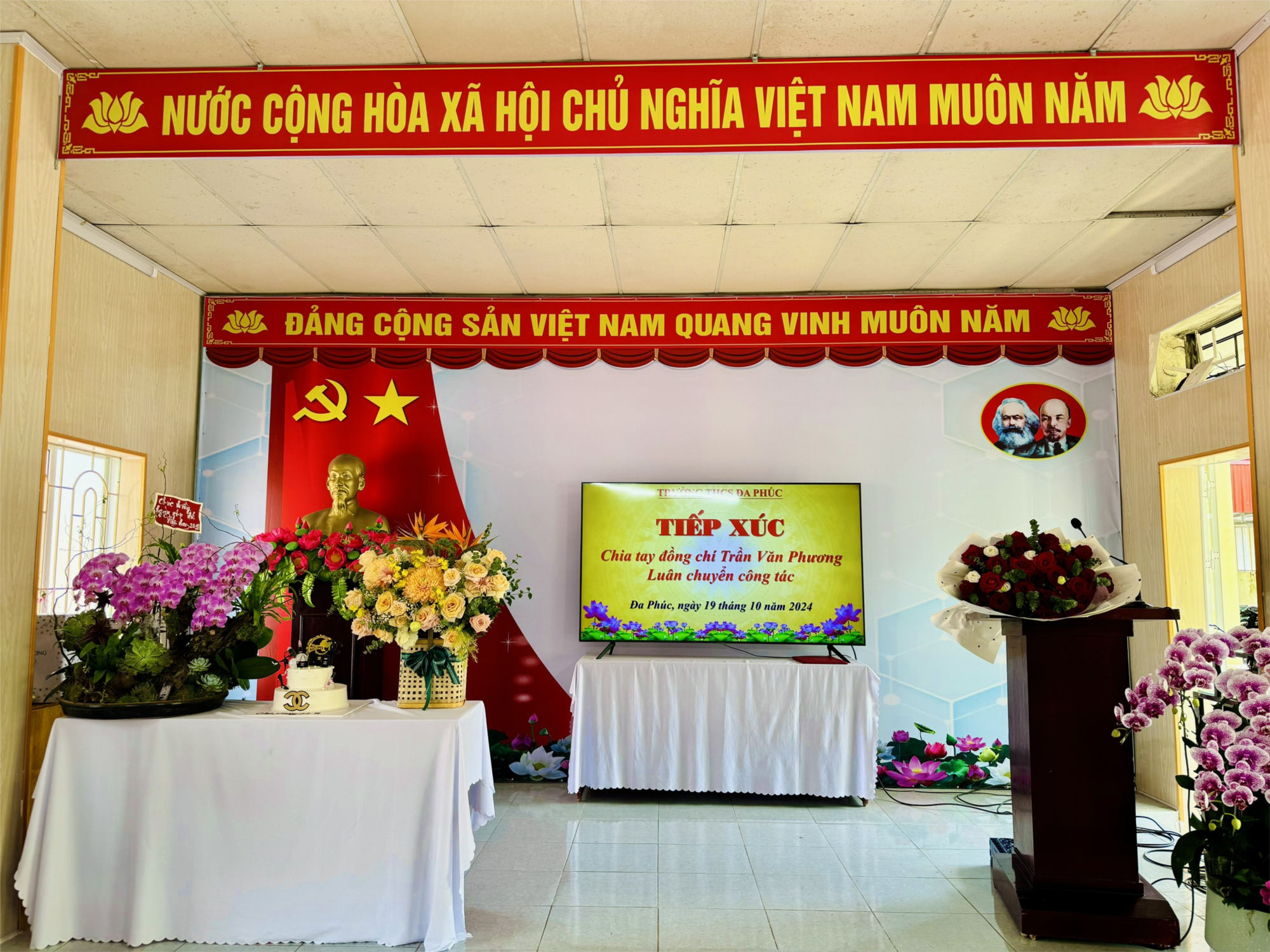 Ngày 19/10/2024 vừa qua, trường THCS Đa Phúc đã tổ chức buổi lễ chia tay đầy xúc động đối với thầy Trần Văn Phương - Hiệu phó nhà trường chuyển công tác. Đây là sự kiện đánh dấu một chương mới trong cuộc đời sự nghiệp của thầy, đồng thời cũng là dịp để toàn thể cán bộ, giáo viên, nhân viên nhà trường bày tỏ lòng biết ơn và sự trân trọng đối với những đóng góp của thầy đã dành cho nhà trường.